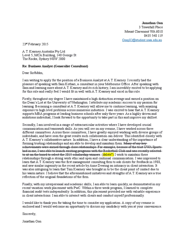 In addition, i have an extensive background in a variety of management. Upon review of your posting for a business analyst, i felt compelled to submit my resume for your review. Business analyst cover letter sample. But—his next employer doesn't know that yet. To be considered for top business analyst jobs, your cover letter must demonstrate your skills and experience, as well as your passion for business. When writing a cover letter, be sure to reference the requirements listed in the job description.in your letter, reference your most relevant or exceptional qualifications to help employers see why you're a great fit for the role. 4441 chapel street, jacksonville, fl 32258 June 21, 2017 | by zachary vickers. Let's start with two business analyst cover letter examples: Business analyst cover letter template (text format) ashley watkins. Effectively convey your skills and expertise with help from our business analyst cover letter example and writing tips. I am writing to express my strongest interest in the business analyst position that is vacant at xyz. If you want to make sure in our writing and resume crafting skills, feel free to review a sample kindly provided by our team.